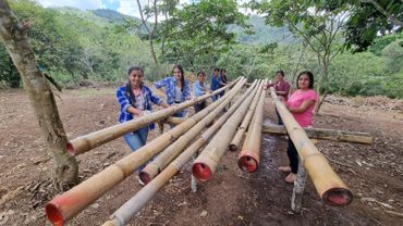 Una vez madurado, el bambú se utilizará para la construcción de casas, postes, muebles y proyectos artesanales de bambú dirigidas por mujeres que pertenecen a las microempresas de Esperanzas Unidas.